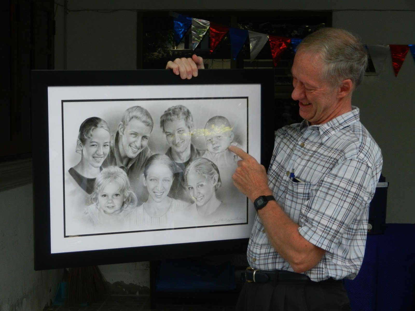 | A 4th of July celebration for Val's 60th Birthday (with the gift of a hand-drawn picture of his children). I feel so blessed to work under the leadership of this man of God. |